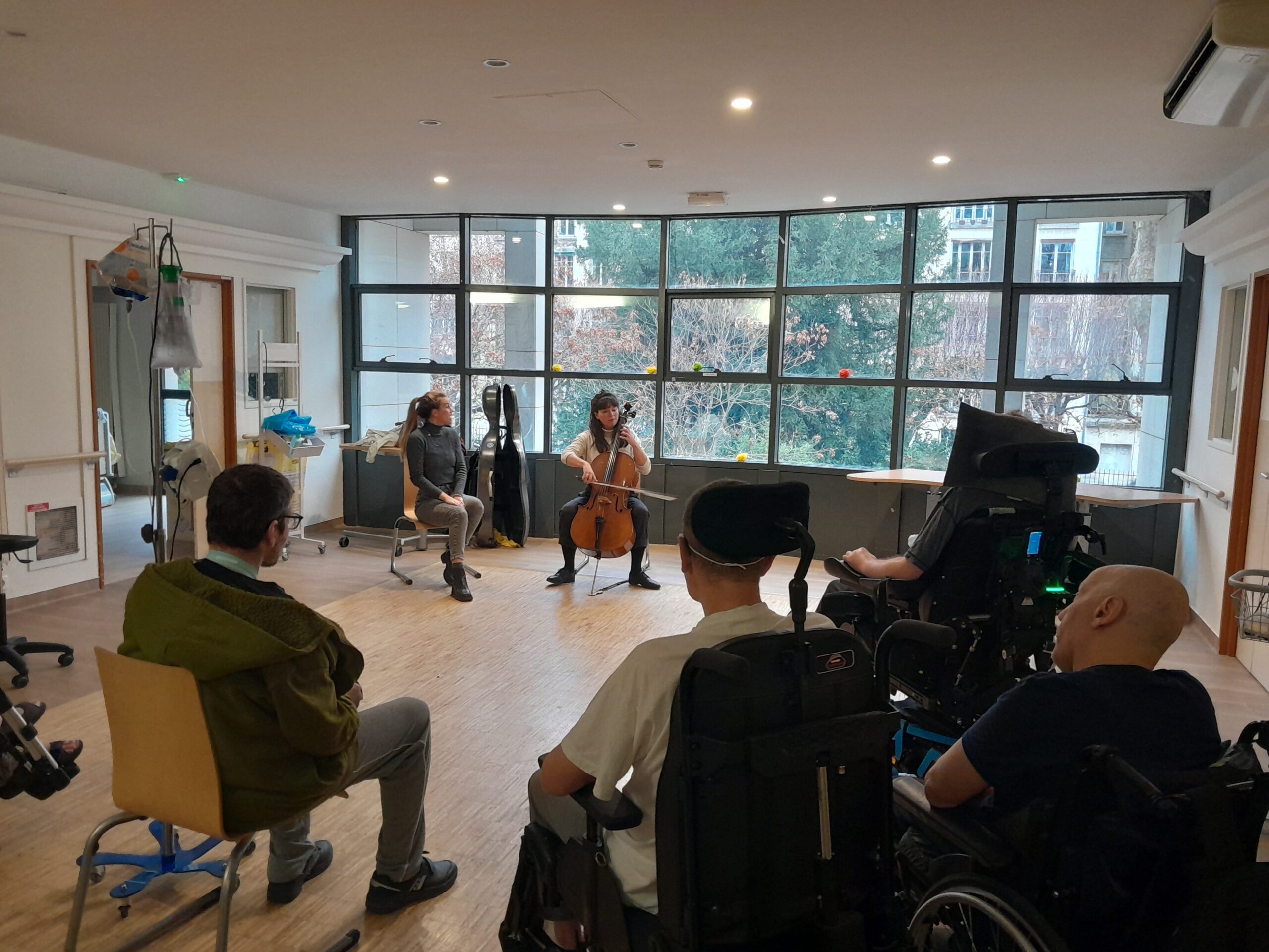 Autour du programme Notes de chœurs, Tournesol organise chaque année un festival qui célèbre l’art vocal dans sa diversité : art lyrique, jazz, chansons populaires et musique du monde. En 2024, six concerts ont pu être proposés de la mi-octobre à la mi-décembre, dans les services moins visités de gériatrie USLD et d’USPC du Bâtiment Rossini de l’hôpital.